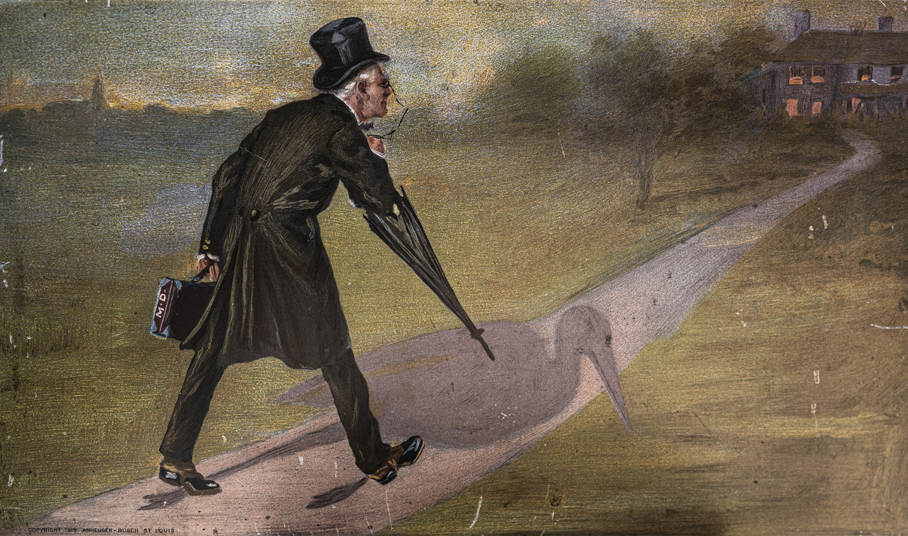 Op zijn tas staat MD - Medicinae Doctor. Het schemert, de lampen in het huis zijn al aan. De schaduw die de dokter voor zich uitwerpt, verraadt waar hij voor komt: een vrouw staat op het punt te bevallen. Bij de voordeur wacht een zenuwachtige echtgenoot…